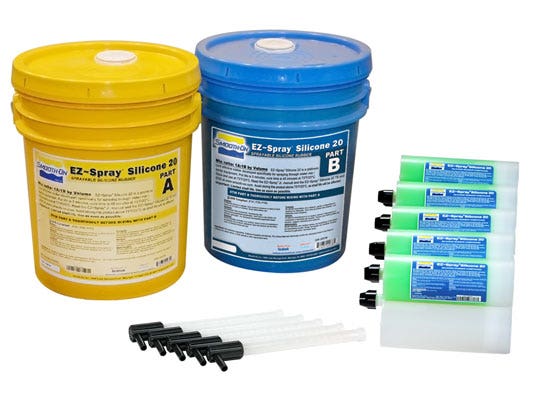 The EZ-Spray™ Jr. gun is convenient & easy to use, saves time & labor costs over hand-application methods and The EZ-Spray™ Jr. gun requires virtually no cleaning or maintenance to operate. The EZ-Spray™ Jr. gun comes with 1 small tip assembly and 1 large tip assembly. Additional static mixers are available. Compressor not included.