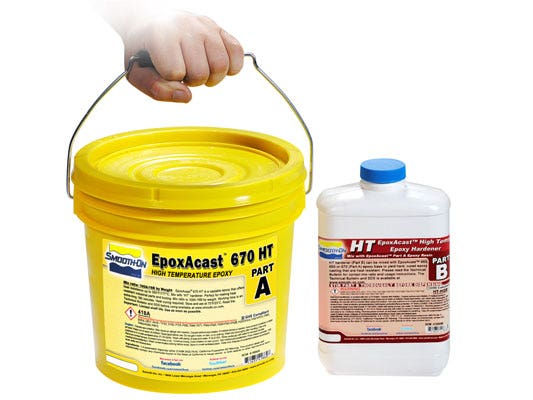 Castings cure with negligible shrinkage and are very hard, very strong and heat resistant. EpoxAcast™ 670 HT is ideal for making vacuum form moulds, foundry patterns, forming dies & fixtures, hard rollers, industrial parts and high impact tools. EpoxAcast™ 670 HT is also suitable for encapsulation applications or for use as a high temperature epoxy for bonding a variety of surfaces.