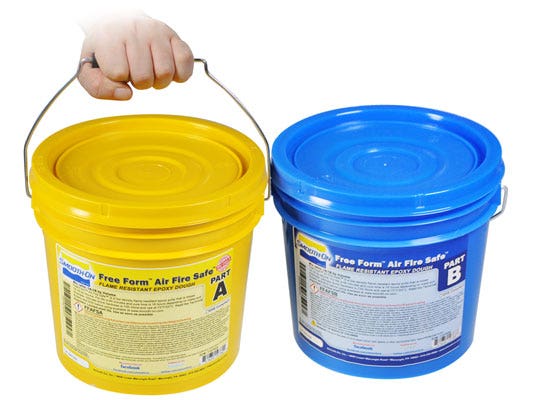 Free Form®AIR is an extremely lightweight epoxy putty suitable for an infinite variety of industrial and art-related applications. This is a low-odor, low shrinkage putty that is unique, inexpensive and easy to use. Free Form®AIR is mixed by hand with a 1A:1B by volume mix ratio. It offers a long working time and cures overnight at room temperature to a hard, rigid epoxy that is very strong with modeling board-like properties. Cured Free Form®AIR is so lightweight, it will float in water. It can be sanded, shaped, drilled, tapped and CNC machined/routered. It will readily accept any paint. Free Form can also be colour pigmented with SO-Strong™ or Ignite™ colorants.