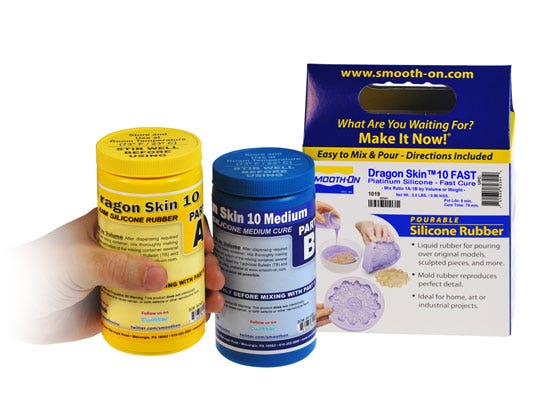 Time Tested, Versatile Special Effects Material – Soft, super-strong and stretchy, Dragon Skin™ 10 (Very Fast, Fast, Medium and Slow speeds) is used around the world to make spectacular skin and creature effects. An infinite number of colour effects can be achieved by adding Silc Pig™ silicone pigments or Cast Magic™ effects powders. Cured rubber can also be painted with the Psycho Paint™ system. Cured material is skin safe and certified by an independent laboratory.