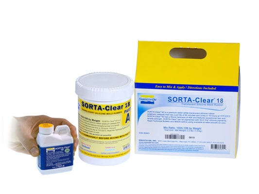 SORTA-Clear™ Series rubbers are premium water clear translucent silicone rubbers (platinum catalyst) which cure at room temperature with negligible shrinkage. This product requires a gram scale for measuring parts A + B. SORTA-Clear™ 18 comes in Shore 18A hardness and features high tensile and tear strength.